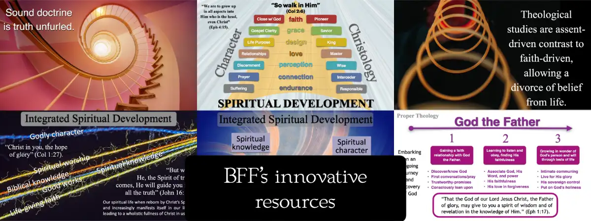 The diagram above illustrates how the Lord enables us to create, share, translate, and build others up through biblical and Christian training resources, thereby glorifying our Lord. BFF’s created resources can be freely shared as God directs.